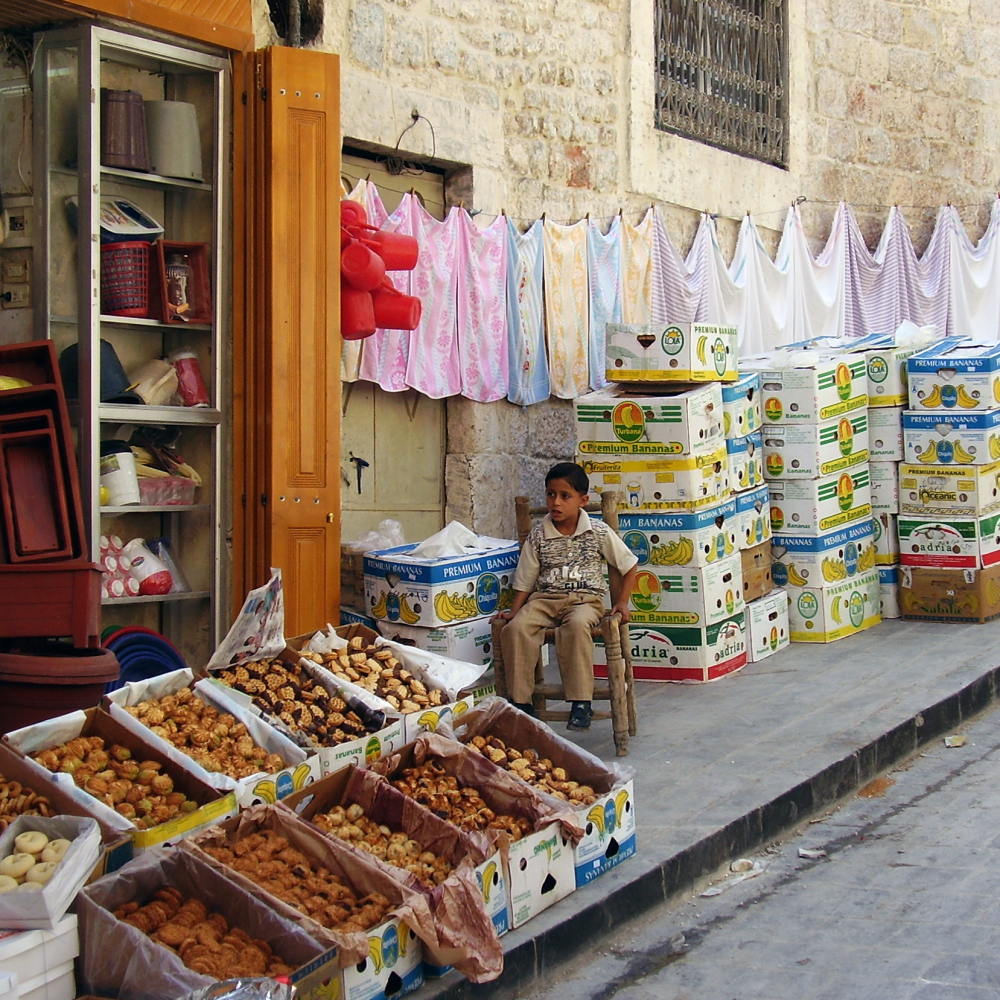 Für meinen neuen Kochkurs habe ich nun die Lieblingsrezepte meines Onkels (glücklicherweise kochen in meiner syrischen Familie auch die Männer leidenschaftlich!) gesammelt: Klassiker der Aleppo-Küche, Soulfood aus der Levante, wie die als „Lahmacun“ bekannten Brotfladen in ihrer allerbesten Variante (mit Rindfleisch und Granatapfelsirup), geräucherter grüner Weizen mit Linsen und gebratenen Zwiebeln, warme Kichererbsen mit Tahina und frittiertem Fladenbrot, der legendäre Petersiliensalat mit Bulgur (nicht mit Couscous!) und ein Nachtisch, der eigentlich aus Palästina stammt, den ich aber nirgends so gut gegessen habe wie in einer kleinen Bäckerei in der Altstadt von Aleppo, und in die mich „mein Onkel aus der Levante“ stets mitgenommen hat …