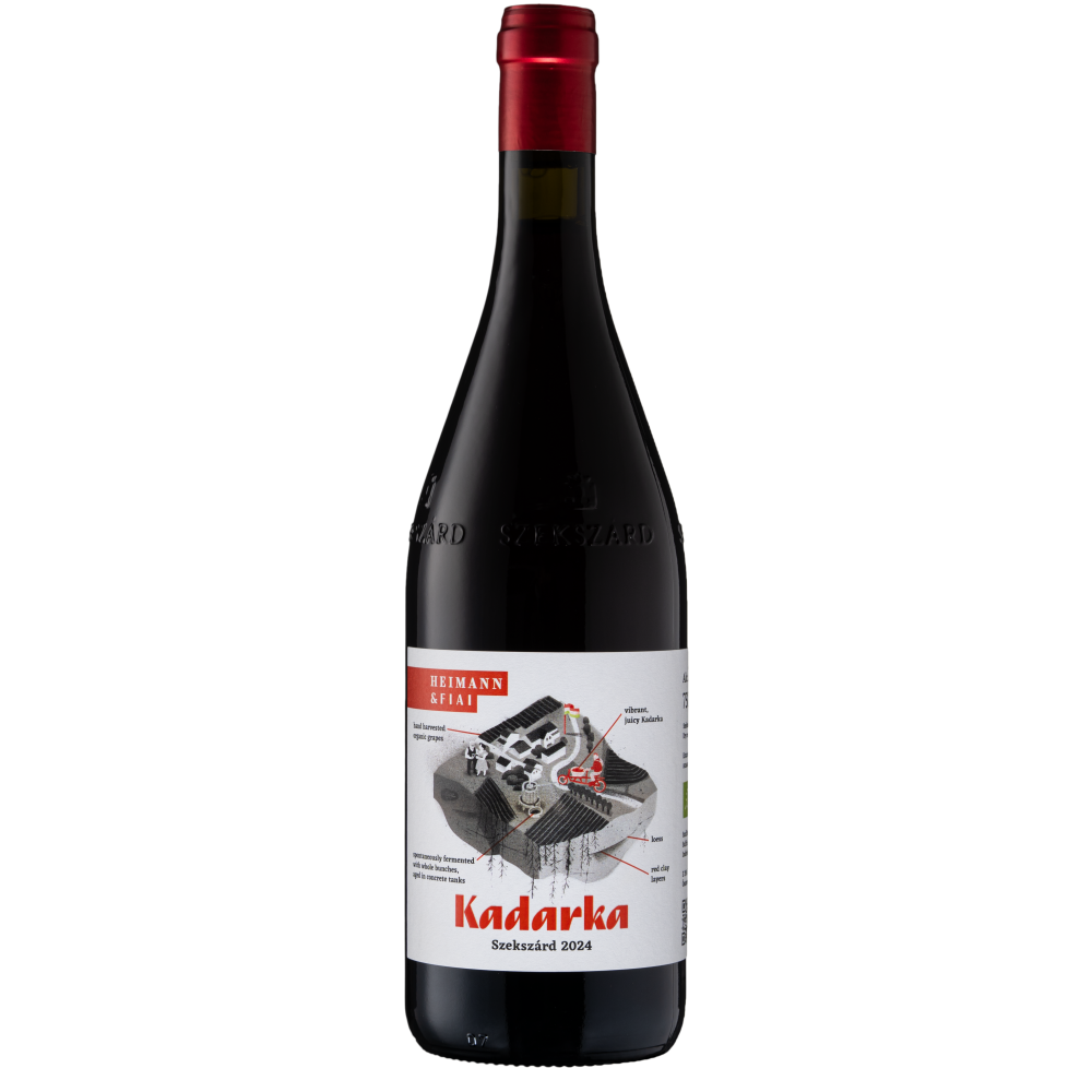 Das Weingut Heimann in Szekszárd, Ungarn, ist seit 1758 im Familienbesitz – tief verwurzelt seit Generationen mit schwäbischen Wurzeln. Mit rund 25?Hektar Rebland kultiviert die Familie sowohl klassische Bordeauxsorten als auch autochthone Rebsorten wie Kadarka und Kékfrankos. Unter Zoltán Heimann Senior und Ágnes Heimann wurde das Weingut ab 1989 schrittweise modernisiert (Erweiterung von Keller und Rebfläche, Einstieg in ökologischen Weinbau). Seit etwa 2016, dem Generationswechsel, führen die Söhne das Segment „Heimann & Fiai“, das sich auf leichte, terroir-geprägte Weine konzentriert – insbesondere Kadarka („Kadarka?Man” ist Spitzname von Zoltán Jr.) und Kékfrankos. Diese Weine entstehen durch spontane Gärung, minimale Schwefelung, großen Holzbotticheinsatz und teils reine Ganztraubengärung – alles mit dem Anspruch, die Frische und Sortenreinheit zu bewahren.